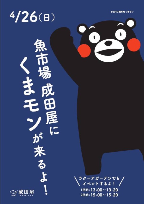此外,4月26日(星期日),来自熊本县的“熊本熊”