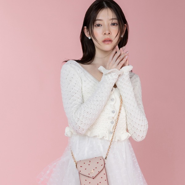 闪闪发光的心形宝石纽扣增添了动感,洋溢着女人味的针织开衫。