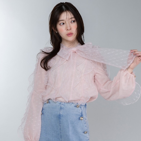 心形图案和荷叶边让人心动的女衬衫。