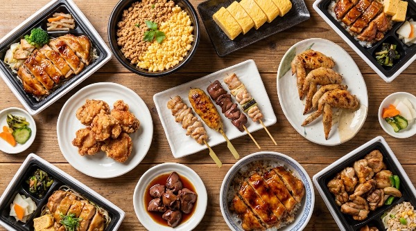 鸡肉鸡蛋盖饭、烤鸡肉串、炸鸡、便当等。