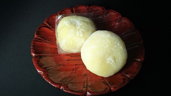 在白色豆馅中放入大量栗粒,用糯米团包裹。
