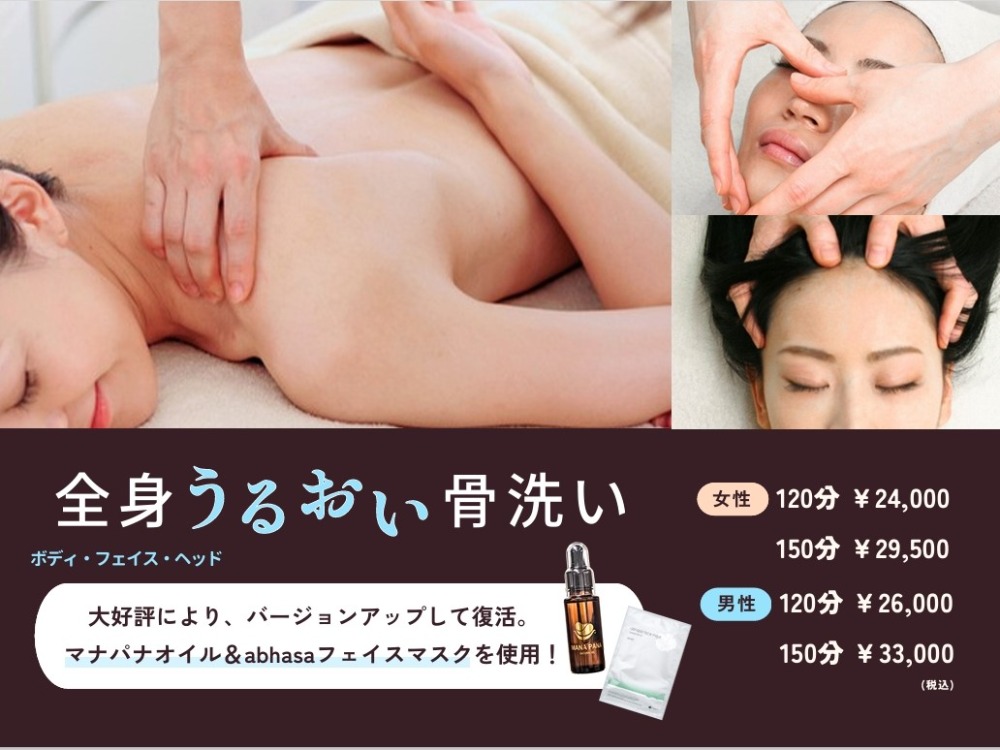 在身体护理中,我们也提供使用配合了塔玛努油的、使用起来很滋润的面膜的服务。