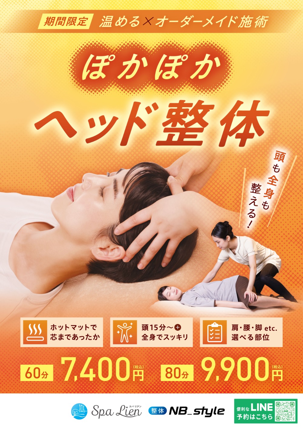 根据身体状况定制的整体疗程,加上头部的调整♪