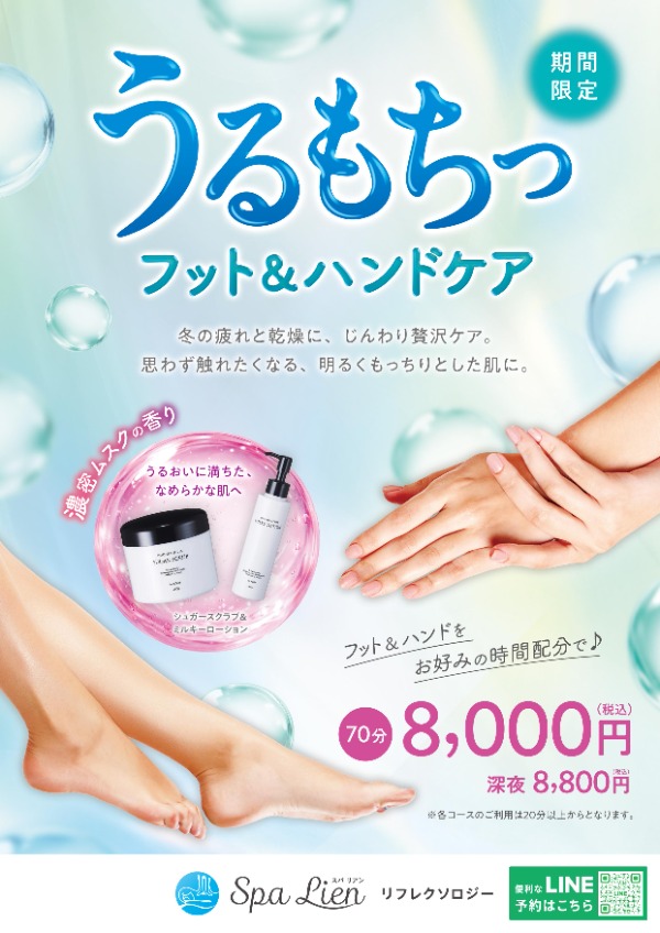 【リフレクソロジー】”うるもちっ”フット&ハンドケア