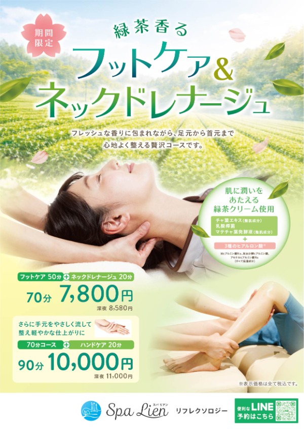 【リフレクソロジー】緑茶香る ~フットケア&ネックドレナージュ~