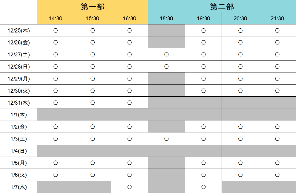 我们将为您介绍男性浴室内桑拿房的Aufguss年末年始的日程安排。
