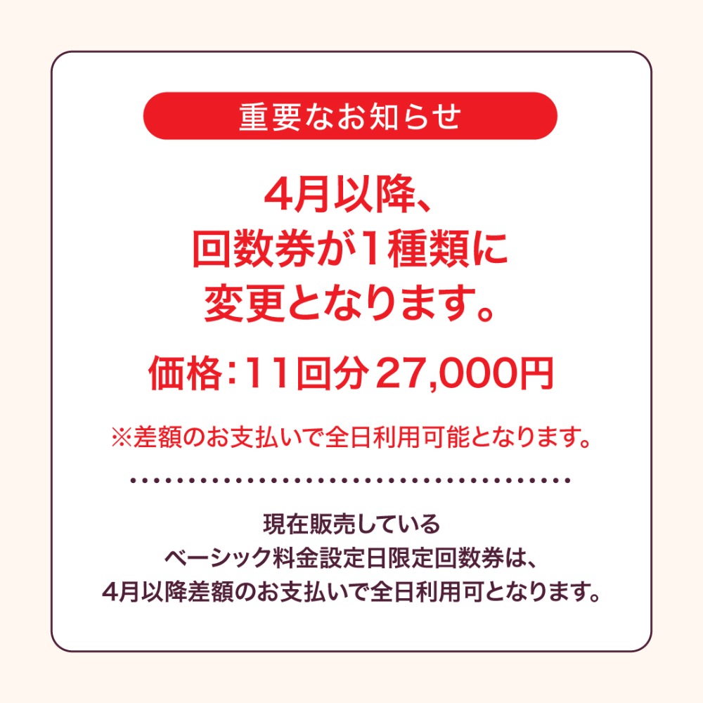 \ 基本费用设定日限定入馆回数券(11张册・6个月)/