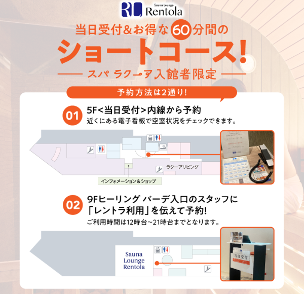 申し込みはスパ ラクーア内2か所で行うことができます!